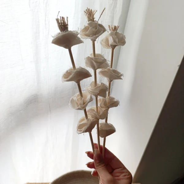 Nuestras flores están confeccionadas a mano con delicadas telas, creando piezas únicas llenas de encanto y textura. Disponibles en distintos tamaños y estilos, son ideales para armar ramos, decorar floreros o complementar tus espacios con un toque natural y elegante. Su diseño artesanal y sus tonos suaves aportan calidez, armonía y belleza duradera —Elige las tuyas!