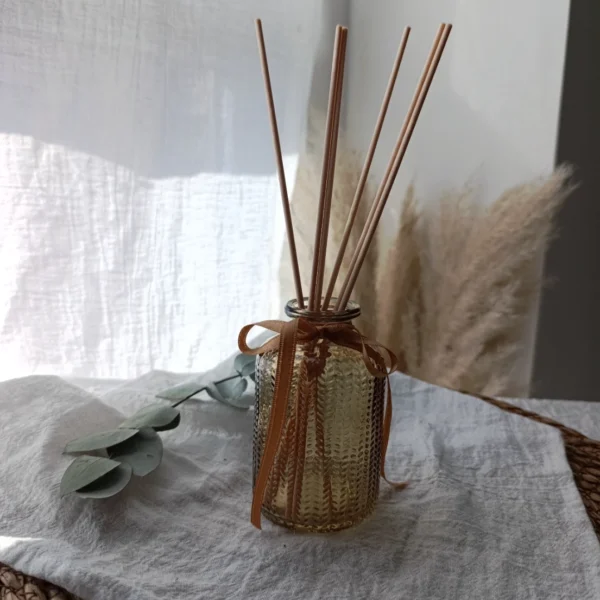 Envase difusor de vidrio con diseño en forma de gota, una pieza simple y elegante que acompaña cualquier estilo de decoración. Disponible en transparente, ámbar y gris fumé.